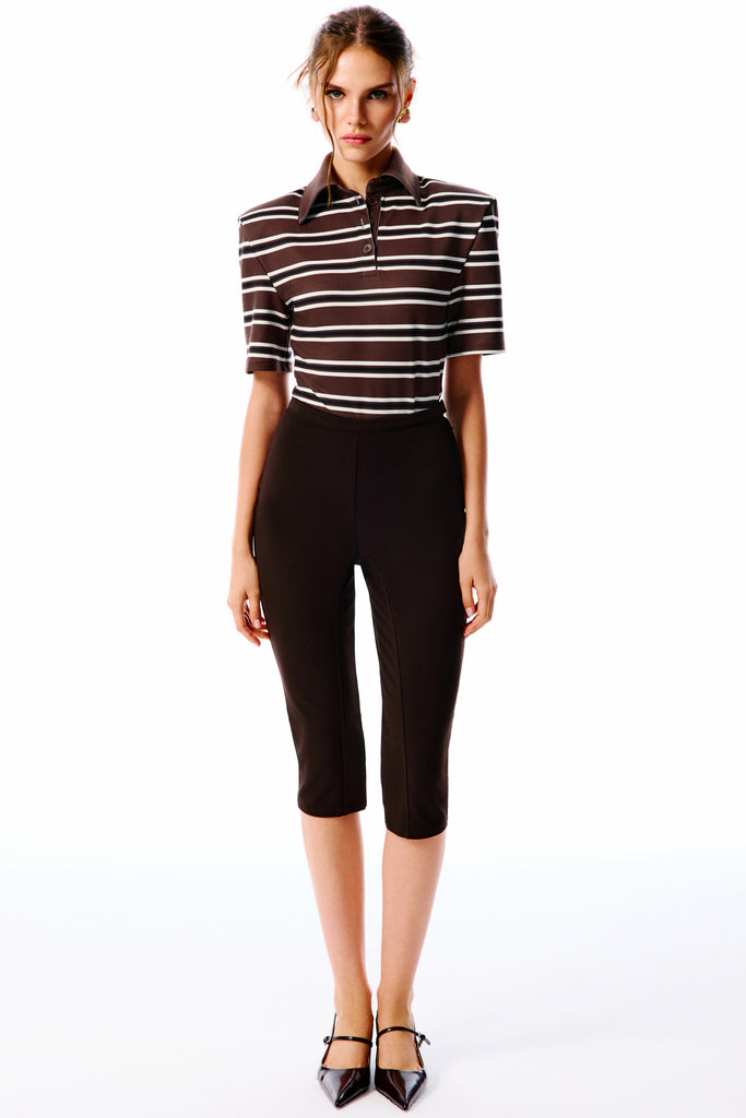 COLETTA Striped Polo Neck Bodysuit