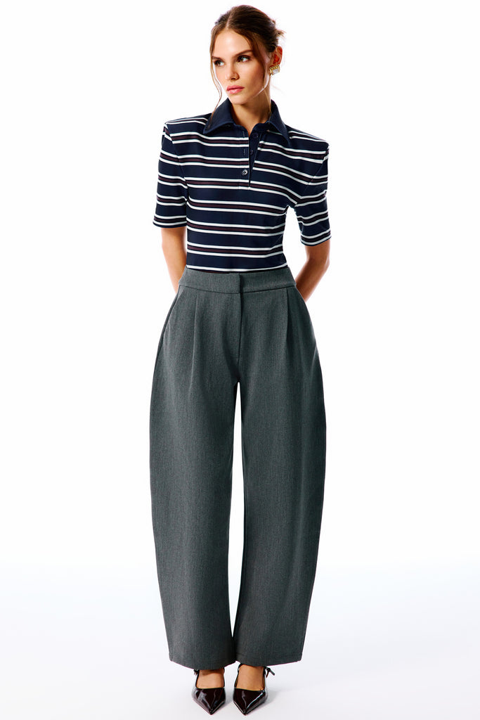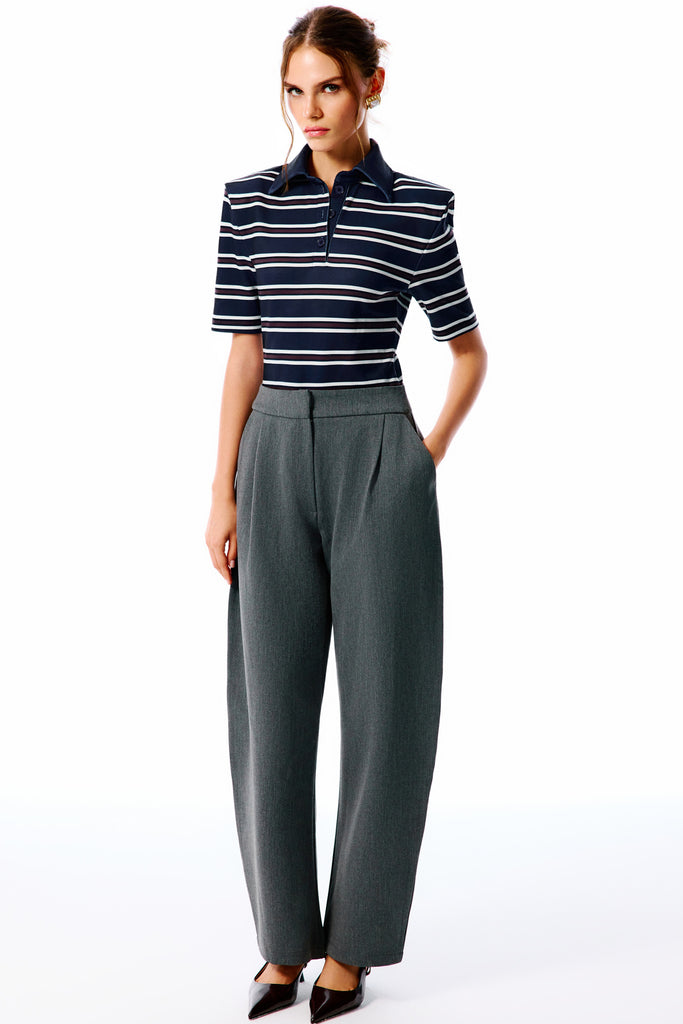 COLETTA Striped Polo Neck Bodysuit
