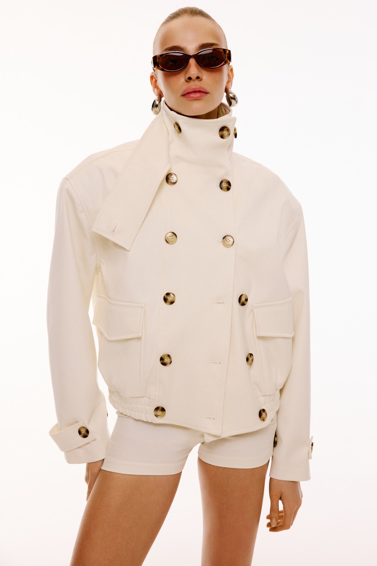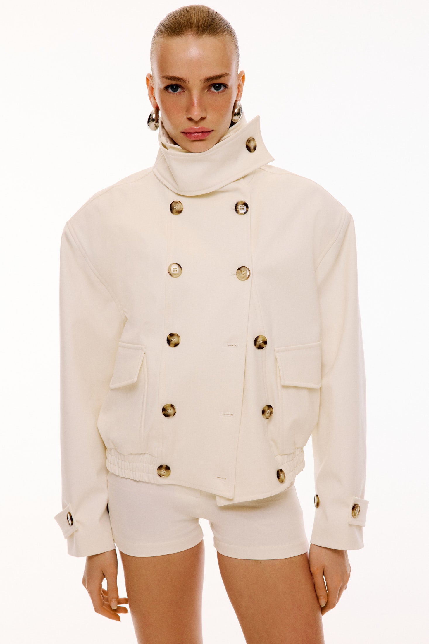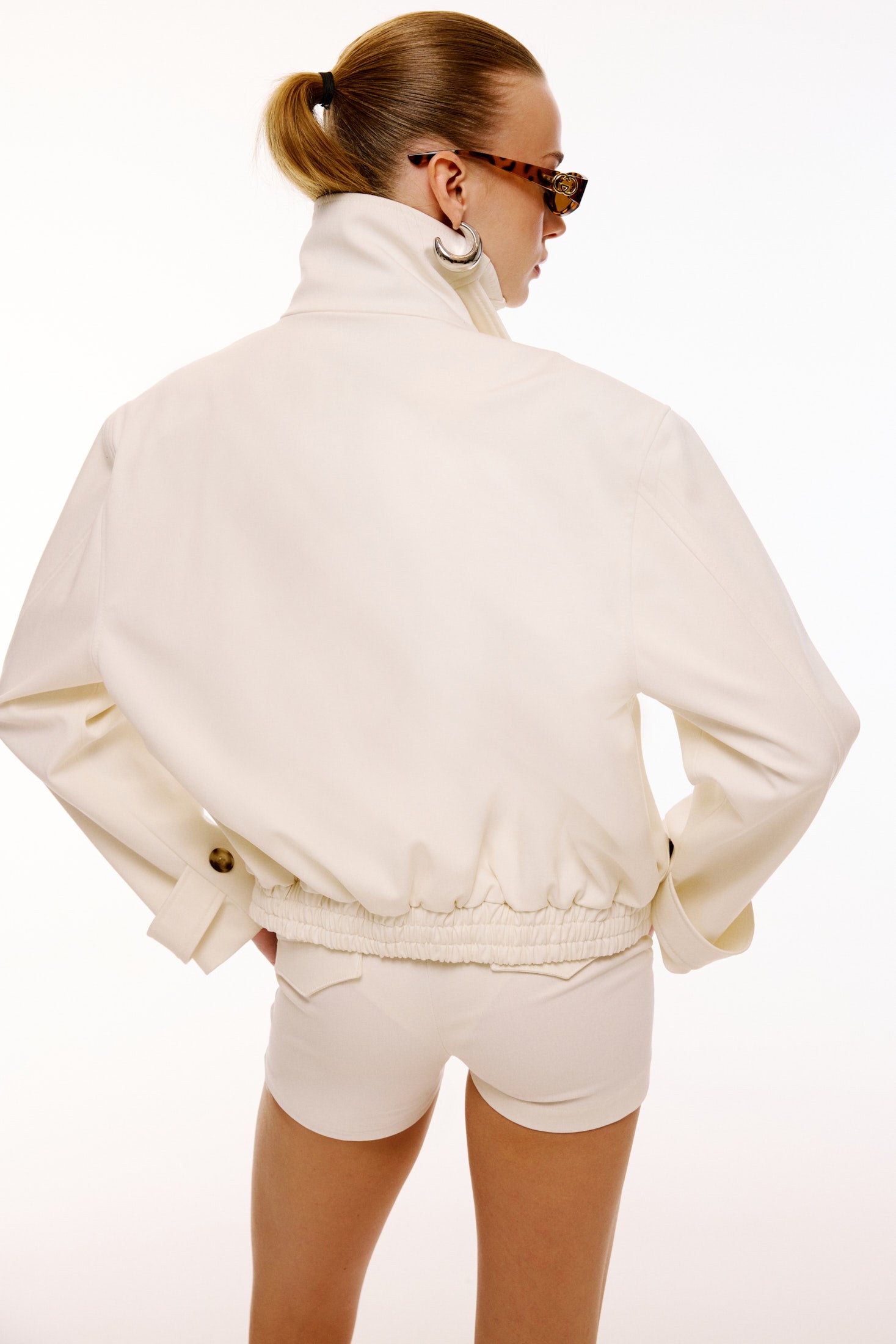 MARA Stand Collar Bomber Jacket (Beyaz)